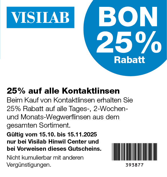 Bei Visilab Hinwil Center finden Sie eine grosse Auswahl an Fassungen und Sonnenbrillen (Damen, Herren und Kinder). Die fachkundigen Optiker stehen Ihnen für Sehtests (auch für Führerausweise), Kontaktlinsen, oder optische Beratungen zur Verfügung. Darüber hinaus ermöglicht die Vielfalt der Angebote von Visilab der ganzen Familie, die besten optischen Lösungen zu attraktiven Preisen und zu jeder Jahreszeit zu nutzen. Entdecken Sie im Geschäft oder auf visilab.ch die Angebote für Kinder, Teens, Jugendliche sowie eine ganze Reihe von aktuellen Sonderangeboten.